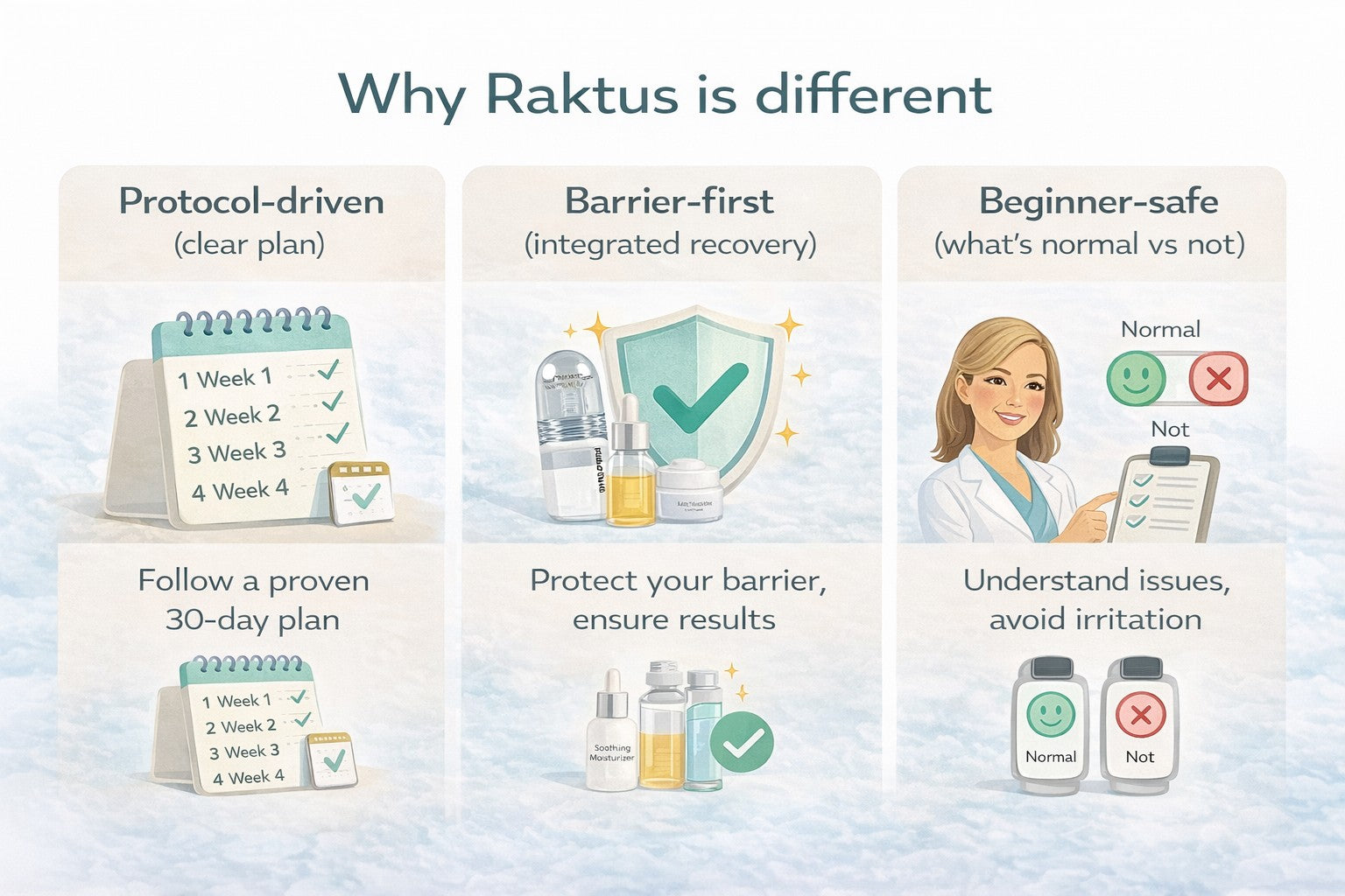 - Do/Don’t guide (retinol/acids)