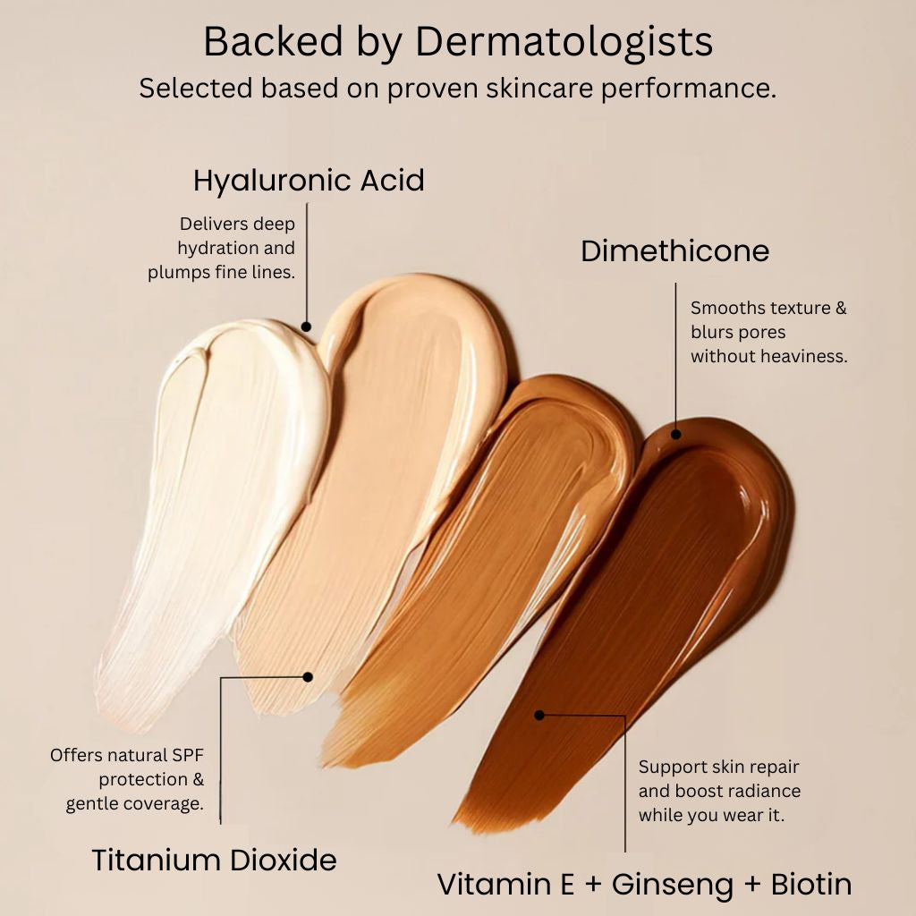 Titanium Dioxide & Mineral Filters (SPF 30): Provide broad-spectrum UVA/UVB protection while adding natural-looking coverage.
