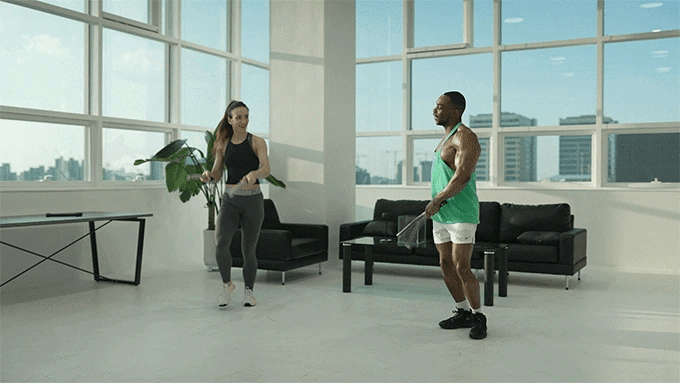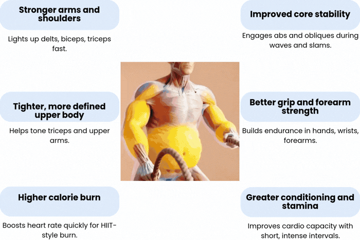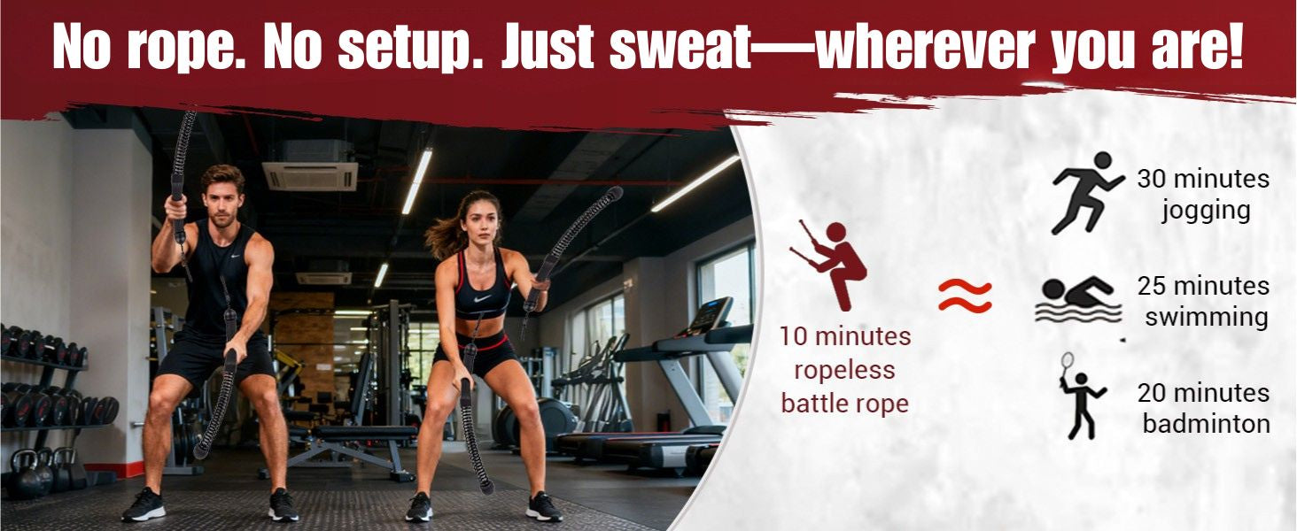 - Ropeless battle rope training — no long rope needed.